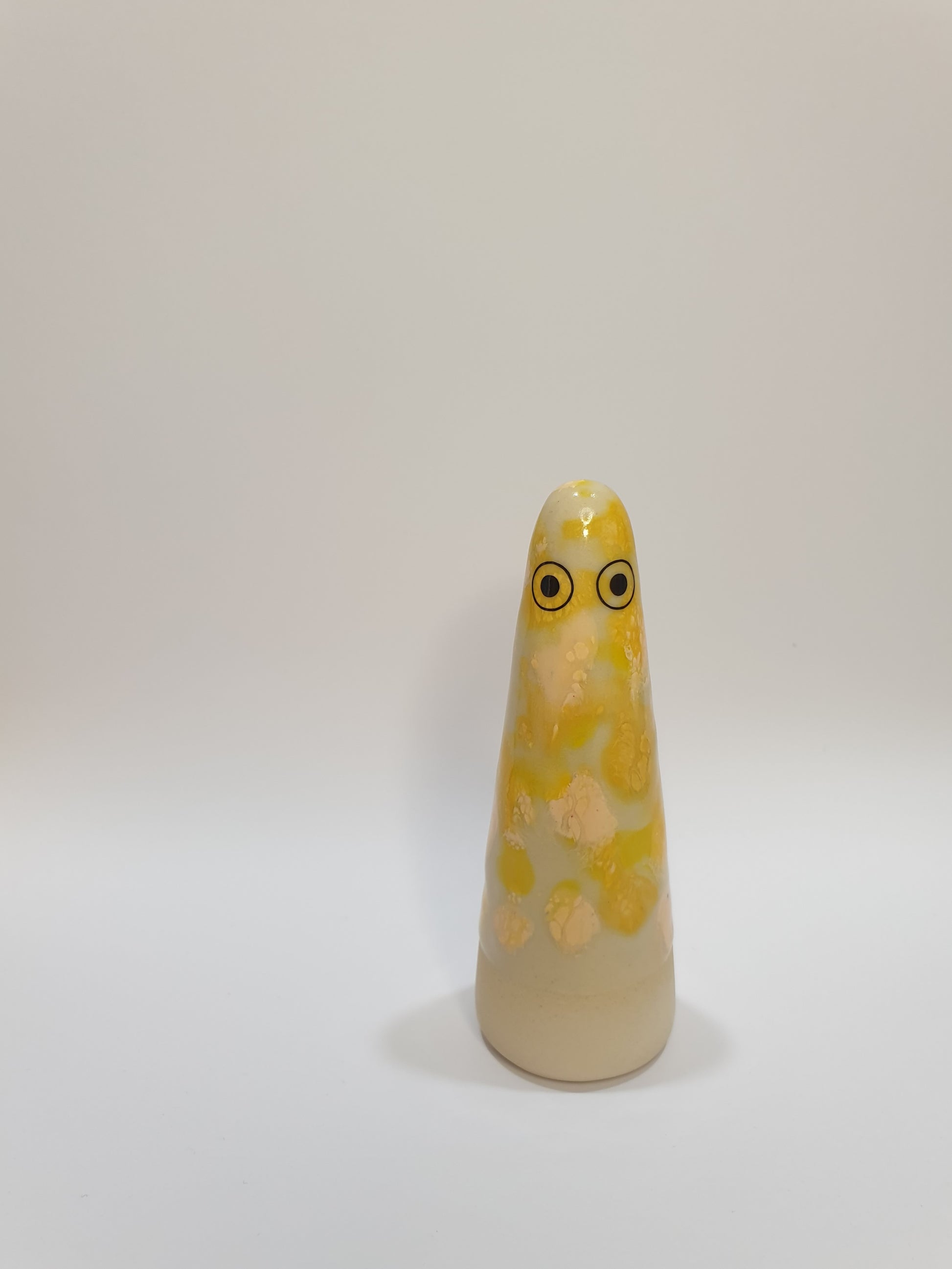 As this is a handcrafted piece, colors, texture + size will differ. The transparent glaze will eventually create fine lines across your Ghost, which is normal.