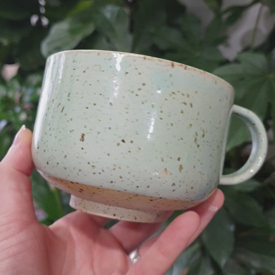 The Mion Mug is a hand thrown stoneware mug, with handle, + is available in various textured, earthy or colorful glazes that Studio Arhoj (A- Hoy) is renowned for. It holds 450ml of the good stuff...