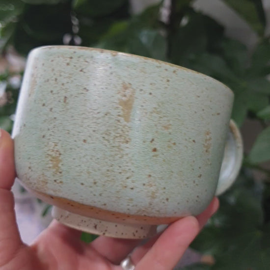 The Mion Mug is a hand thrown stoneware mug, with handle, + is available in various textured, earthy or colorful glazes that Studio Arhoj (A- Hoy) is renowned for. It holds 450ml of the good stuff...